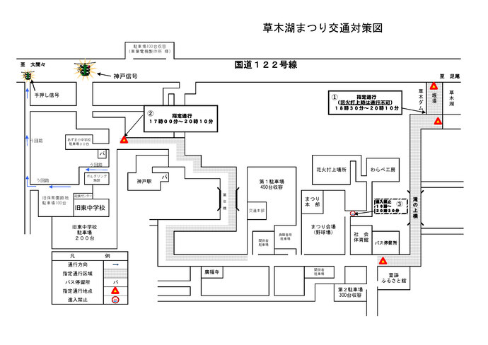 17時から、旧東中学校付近より会場方面に向かう道路を指定通行にいたします。