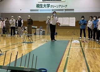 桐生大学グリーンアリーナで行われたみどり市老人クラブ連合会輪投げ大会に出席させていただきました。